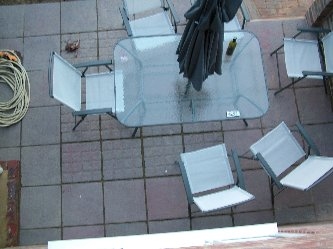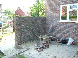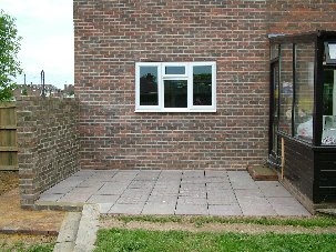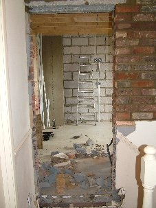 | This was the landing window which would be knocked out to make our bedroom doorway. | Here is a picture taken through the window and shows the stud wall for the shower room. | And this is the window knocked out and the doorway formed. |