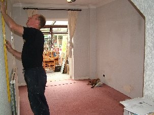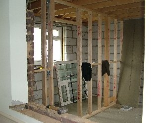 | One of the first jobs was to build a stud wall dividing the lounge and kitchen |