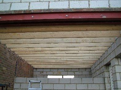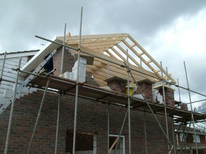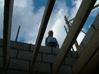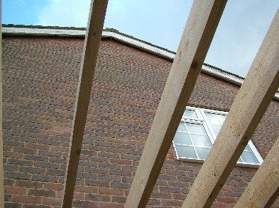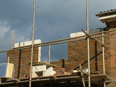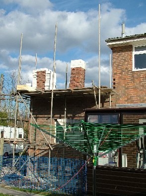 TOP: is a view of the side of the extension and BELOW: are the roof tiles, all of which had to be carried up onto the roof